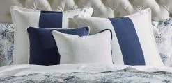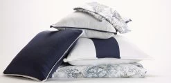 Crafted in a timeless combination of crisp white and navy. This sham features a color-blocked, vertical stripe in a textured, linen-like fabric. Pair it with our Brodey Paisley bedding and our Brodey pillows for a winning combination.