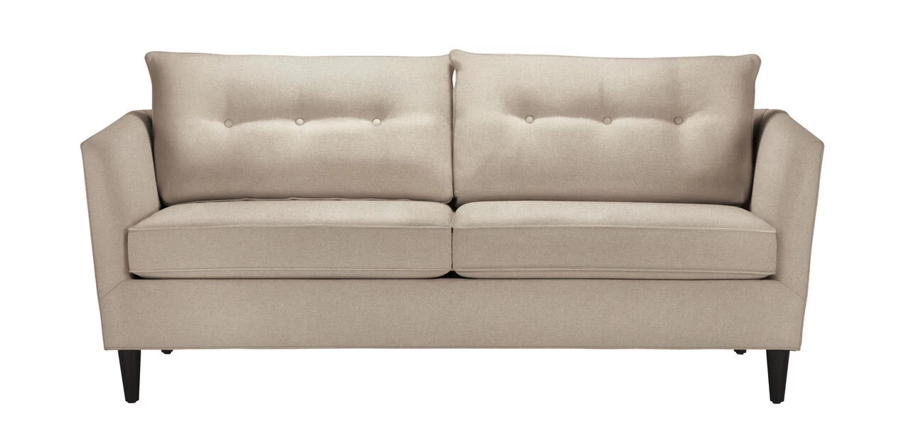 - Slim, flare-arm sofa with midcentury and Nordic roots. Available with smooth back or accent button.