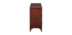 Duncan Phyfe cabinetry influences the Clement double dresser, crafted from Indonesian mahogany, then topped with hand-applied walnut veneers, which add a gorgeous wood pattern to its face. After decorating each drawer with a delicate bead-frame detail, we add an art deco flair through Satin Gold geometric hardware.