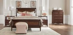 Place a narrow lamp or small items on Clement’s recessed top and easily access a full-depth shelf below. Its two drawers pay tribute to Duncan Phyfe cabinetry with a delicate bead trim, and feature simply beautiful walnut graining suitable for transitional spaces.