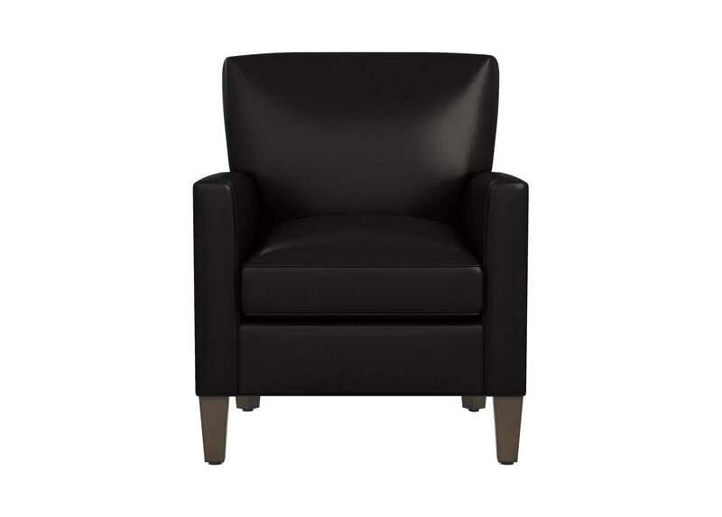 - The Collin chair features a square tight back, deep loose-welted seat cushions, and track-arms