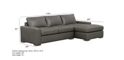 - Willing to wait in exchange for more options? Order your Conway leather sectional with chaise in a custom leather and/or finish.