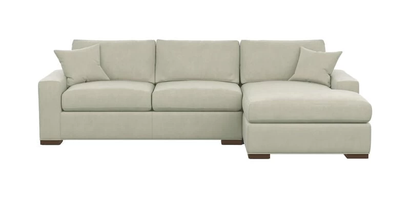 - Poly-wrapped foam cushions provide a soft, structured seat; two 19″ welted arm pillows are included to add a cozy, relaxed feel