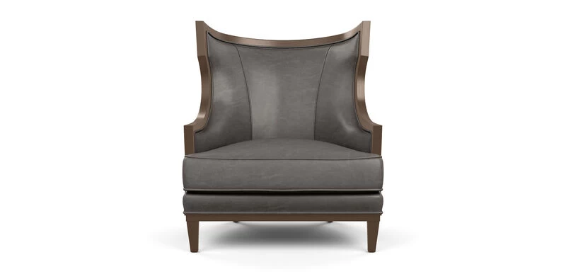 - A wing chair with Klismos design and a contoured tight back and loose welted seat cushions