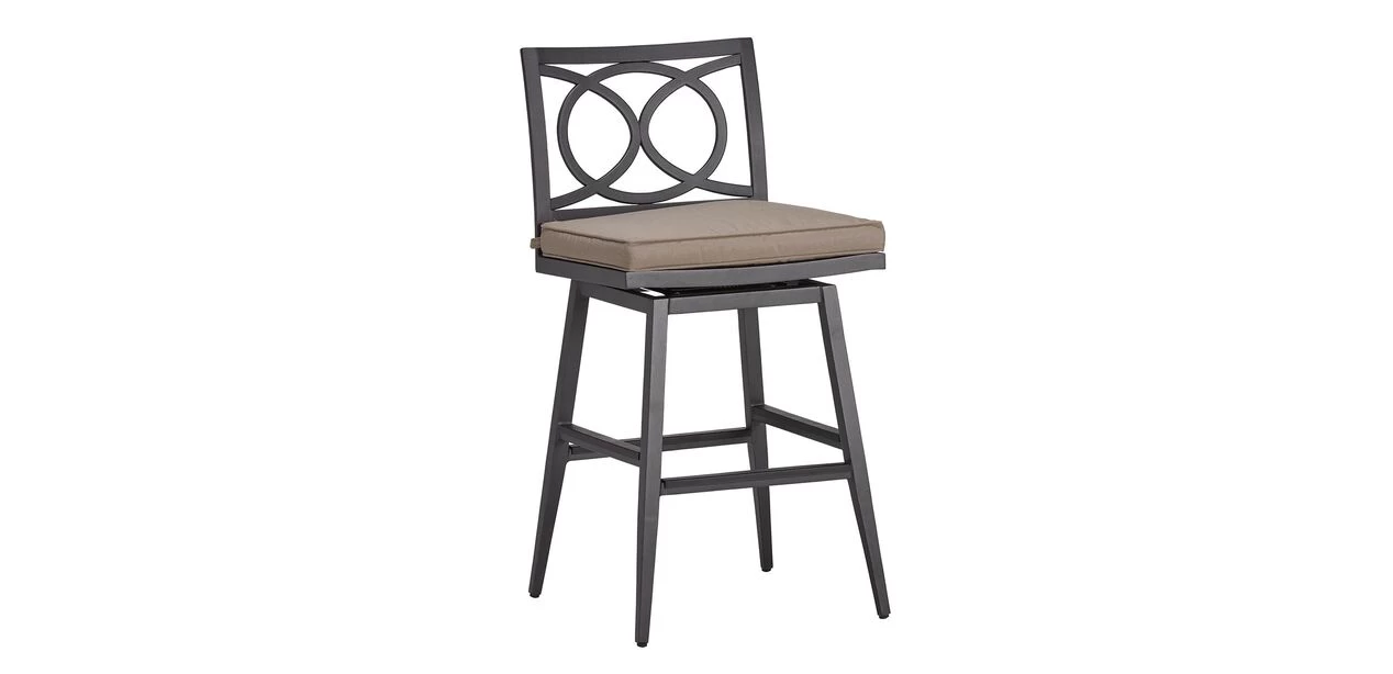 - Swiveling aluminum barstool; easy-care aluminum frame. Indoor/outdoor use.