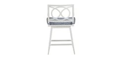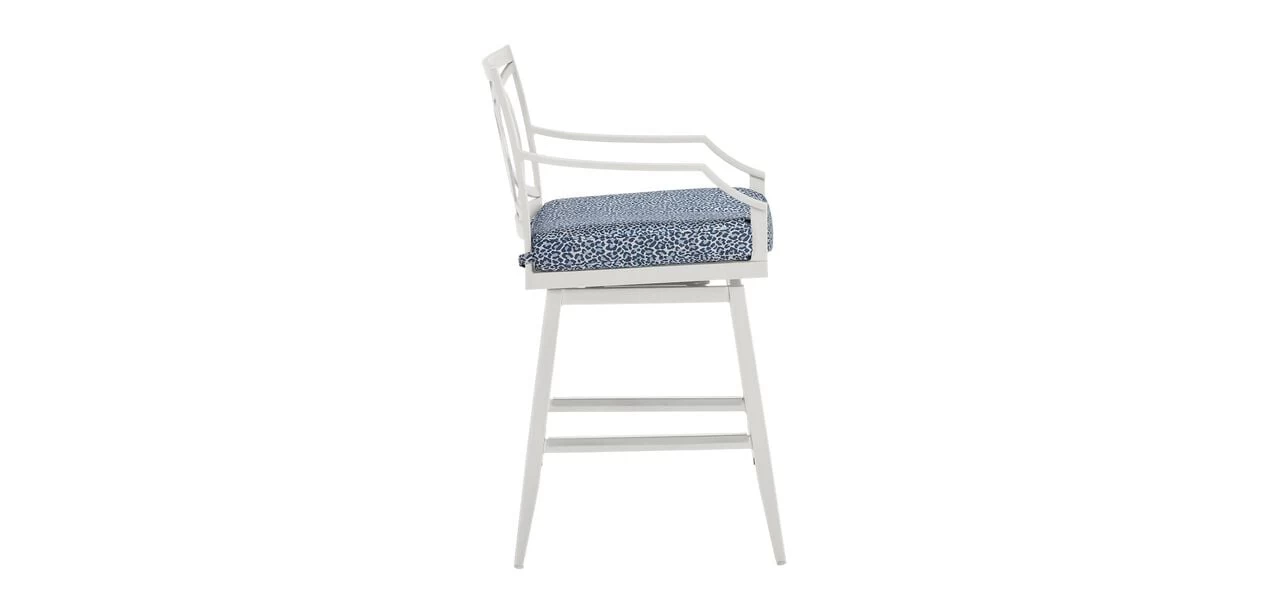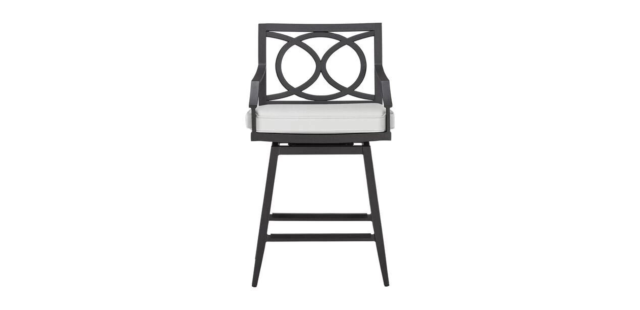- Swiveling aluminum outdoor counter stool with arms; easy-care aluminum frame. Indoor/outdoor use.