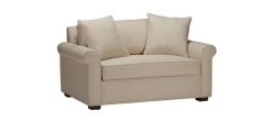 - With tailored track arms and loose cushions for relaxed, modern living. Two 21″ pillows included.