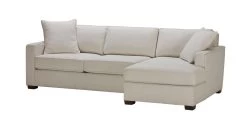 - Two-piece sectional with tailored track arms and loose cushions for relaxed, modern living. Two 21″ pillows included.