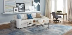A sectional with a low, modern profile, plus track arms and a comfy chaise—sized for small living rooms and apartments. In timeless neutral upholstery, Spencer leans laid-back; in bold hues like blue, it becomes a luxurious statement piece.
